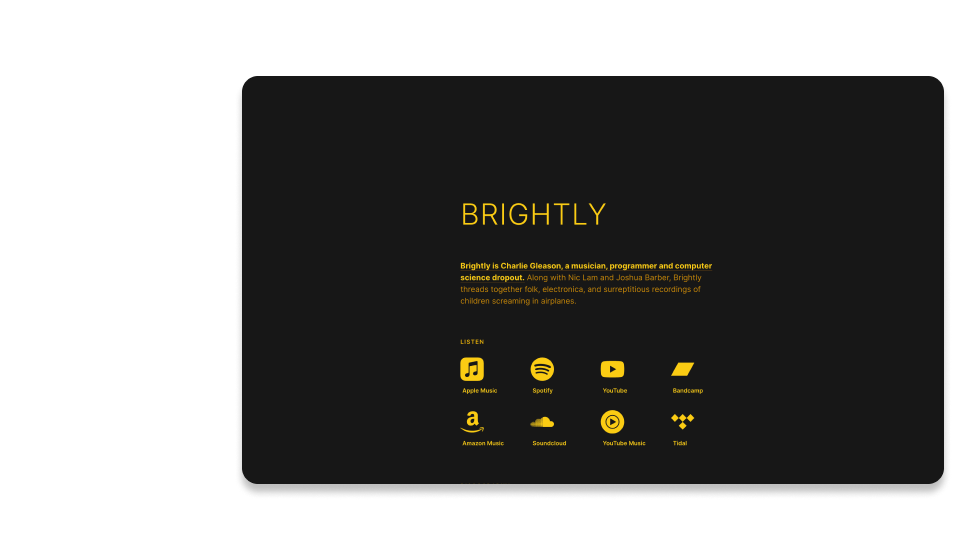 In my spare time I like to work on micro projects, from tools for creative coding, to tweet-based music videos, to design-focused macOS apps. I also sometimes write about development, contribute to open source, and share resources.